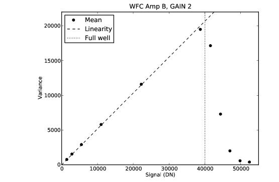 Figure 4.33: Photon Transfer Curve for WFC Obtained During SM4 Optimization Campaign