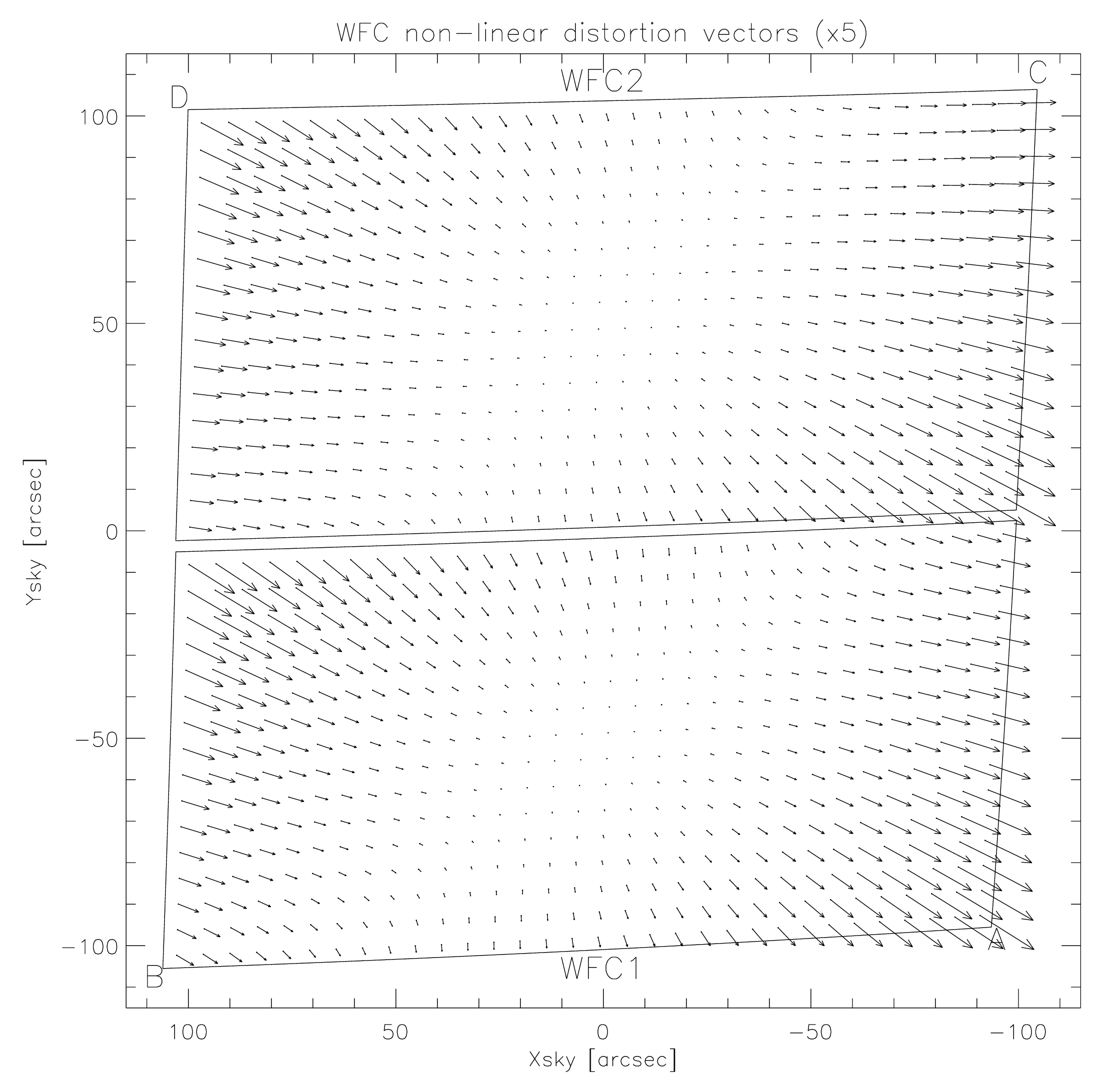 Figure 10.111: The geometric distortion map for the ACS/WFC, which shows only the non-linear component to the solution.