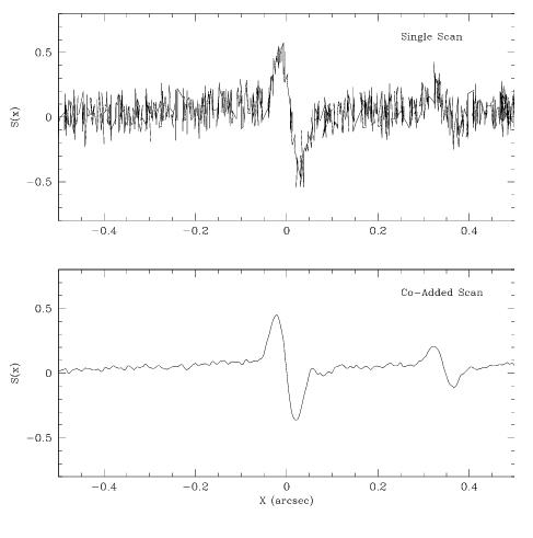 In essence, the “true” signal in a Transfer mode observation of a binary system is the degree to which the observed Transfer Function differs from the S-curve of a point source. The signal-to-noise (S/N) required of an observation will depend upon the object being observed; a wide binary whose stars have a small magnitude difference and separation of 200 mas will be much easier to resolve than a pair with a larger magnitude difference and a separation of only 15 mas.
